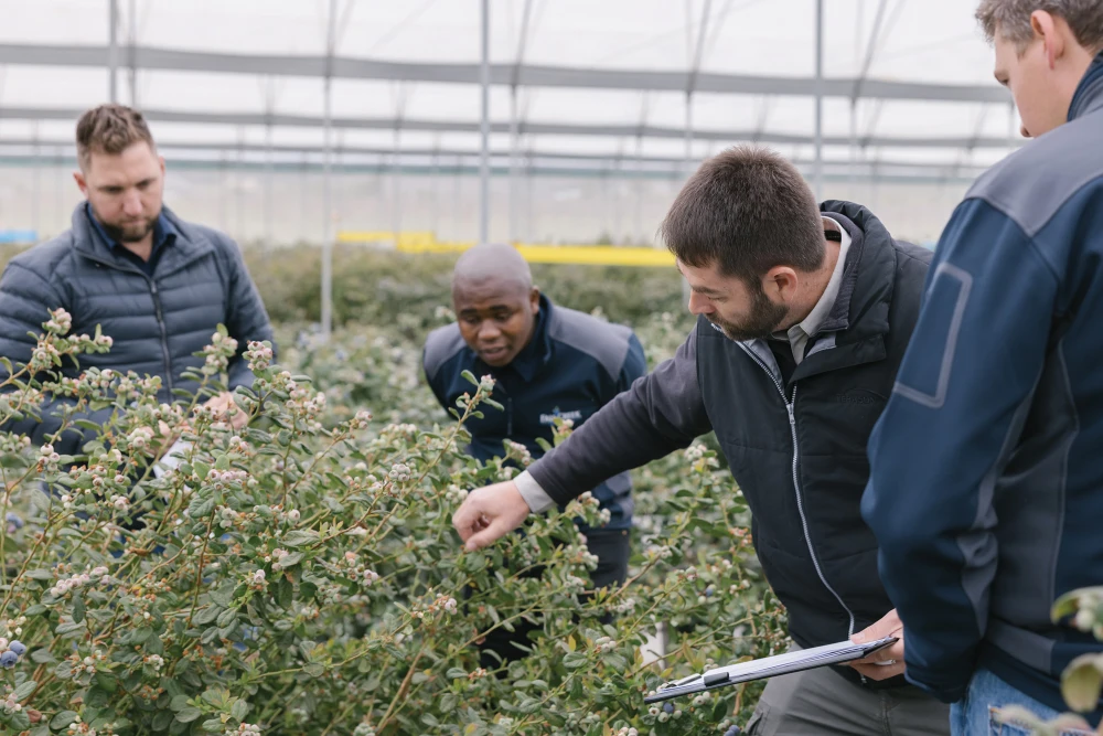 With 17 Northern Highbush varieties featured, all grown in a covered, fertigated substrate, you can observe and interact with a wide range of world-class blueberries, including advanced selections. The site is also an educational hub, hosting events, pruning classes, and demonstrations to share knowledge with growers like you. The demo site serves as a training ground for our technical team, where they capture data, assess fruit quality, and evaluate plant management strategies. By understanding how different varieties perform, we ensure you receive the highest quality plants to support your success.